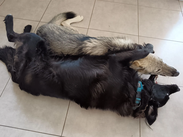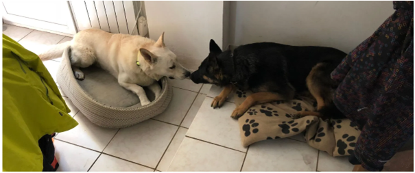 Dans la maison, les chiens ont accès au salon à la cuisine ouverte et au couloir. Les chambres, les toilettes et la salle de bains leur seront interdites. Le garage est utilisé comme une « salle de séchage » en cas de pluie ou de séance de piscine prolongée (l’été uniquement).